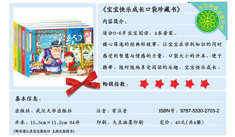 宝宝蛋 宝宝快乐成长口袋珍藏书 三字经 全套4册